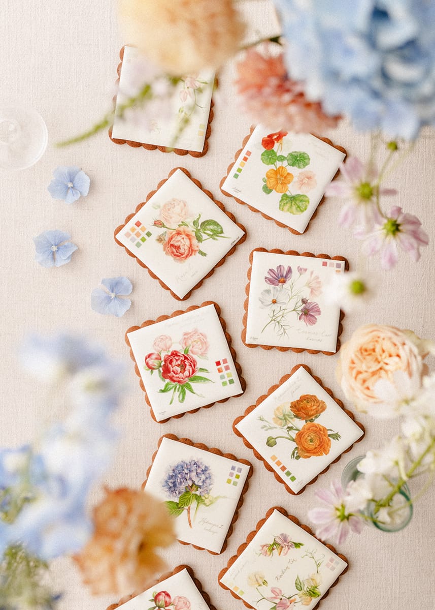 Pierniczki z kolekcji Kwiatowej zaprojektowała Magdalena Pilarska, artystka pochodząca z Torunia. Jest członkinią największego na świecie, prestiżowego brytyjskiego towarzystwa botanicznego – Society of Botanical Artists. Malarstwem botanicznym akwarelą zajmuje się od ponad czterech lat, a w swoich pracach umiejętnie łączy historię z pięknem natury. Inspiracje, które towarzyszą jej sztuce to kwiaty baroku, mowa kwiatów oraz archaiczne dzienniki botaniczne. W ubiegłym roku prace Magdaleny Pilarskiej wystawione zostały na Królewskiej Wystawie Róż - Royal Rose 2024 w Łazienkach Królewskich w Warszawie.