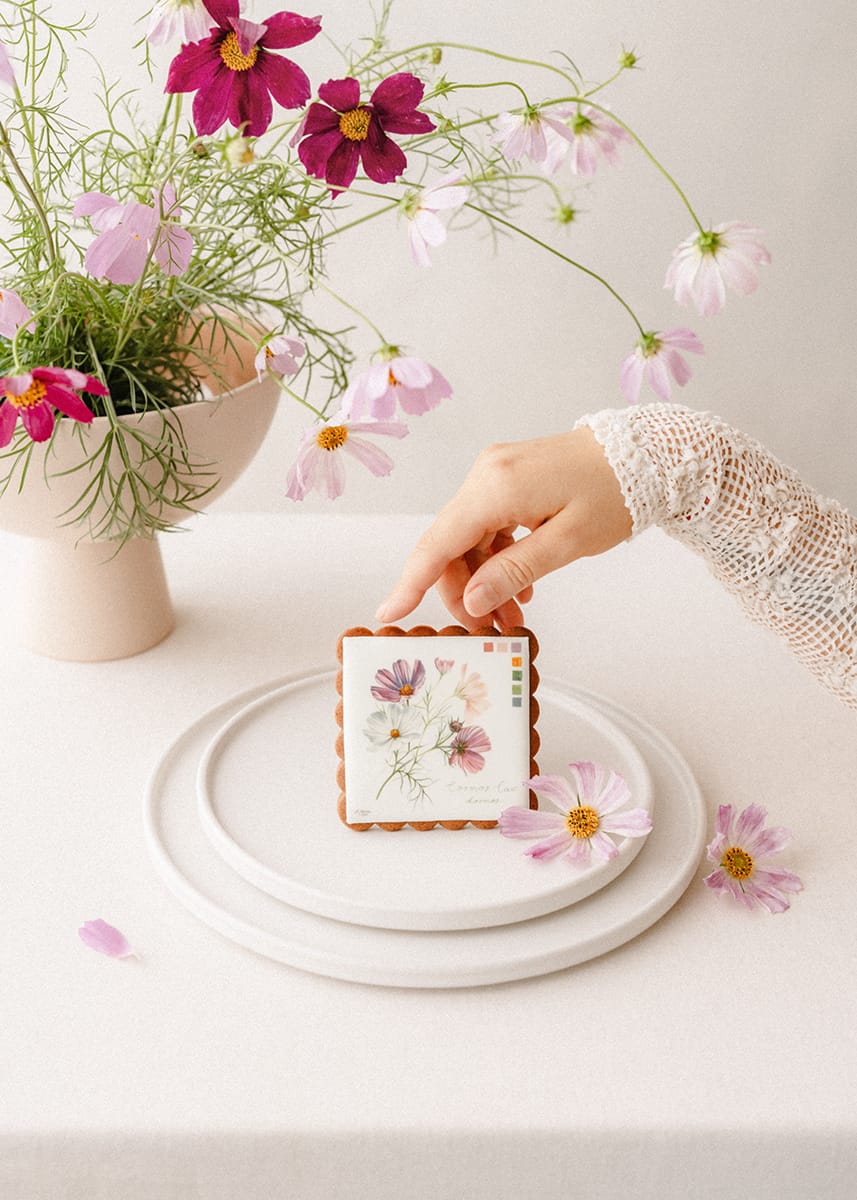 Pierniczek z botaniczną ryciną kwiatu kosmosu od Igi Sarzyńskiej to uroczy i wzruszający upominek.