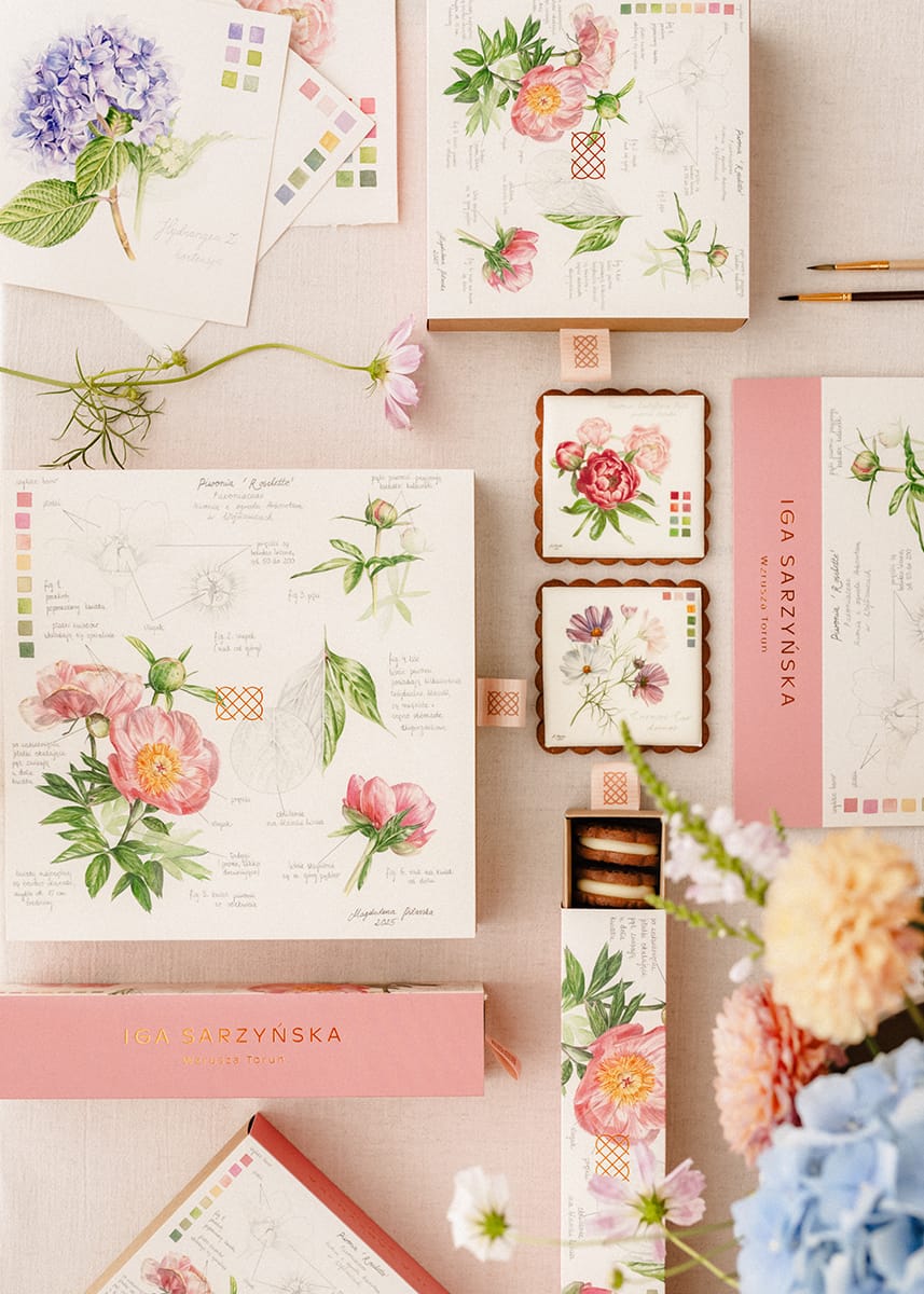 Pierniczki z kolekcji kwiatowej zaprojektowała Magdalena Pilarska, artystka pochodząca z Torunia. Jest członkinią największego na świecie, prestiżowego brytyjskiego towarzystwa botanicznego – Society of Botanical Artists. Malarstwem botanicznym akwarelą zajmuje się od ponad czterech lat, a w swoich pracach umiejętnie łączy historię z pięknem natury. Inspiracje, które towarzyszą jej sztuce to kwiaty baroku, mowa kwiatów oraz archaiczne dzienniki botaniczne. W ubiegłym roku prace Magdaleny Pilarskiej wystawione zostały na Królewskiej Wystawie Róż - Royal Rose 2024 w Łazienkach Królewskich w Warszawie.