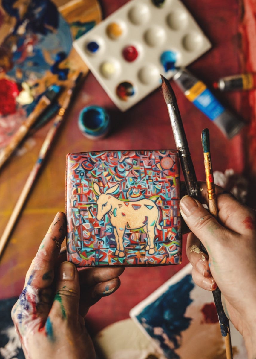 Zestaw czterech pierniczków ozdobionych królewskim lukrem i udekorowanych reprodukcjami obrazów Egdara Pilla. Nasze ręcznie dekorowane, korzenne pierniczki przygotowaliśmy na bazie doskonałej, ciemnej czekolady, naturalnego miodu, masła i niesamowitej mieszanki aromatycznych, starannie wyselekcjonowanych przypraw korzennych. W naszej pracowni tworzymy piernikowe cudeńka wyłącznie z najlepszych składników w oparciu o autorskie receptury.