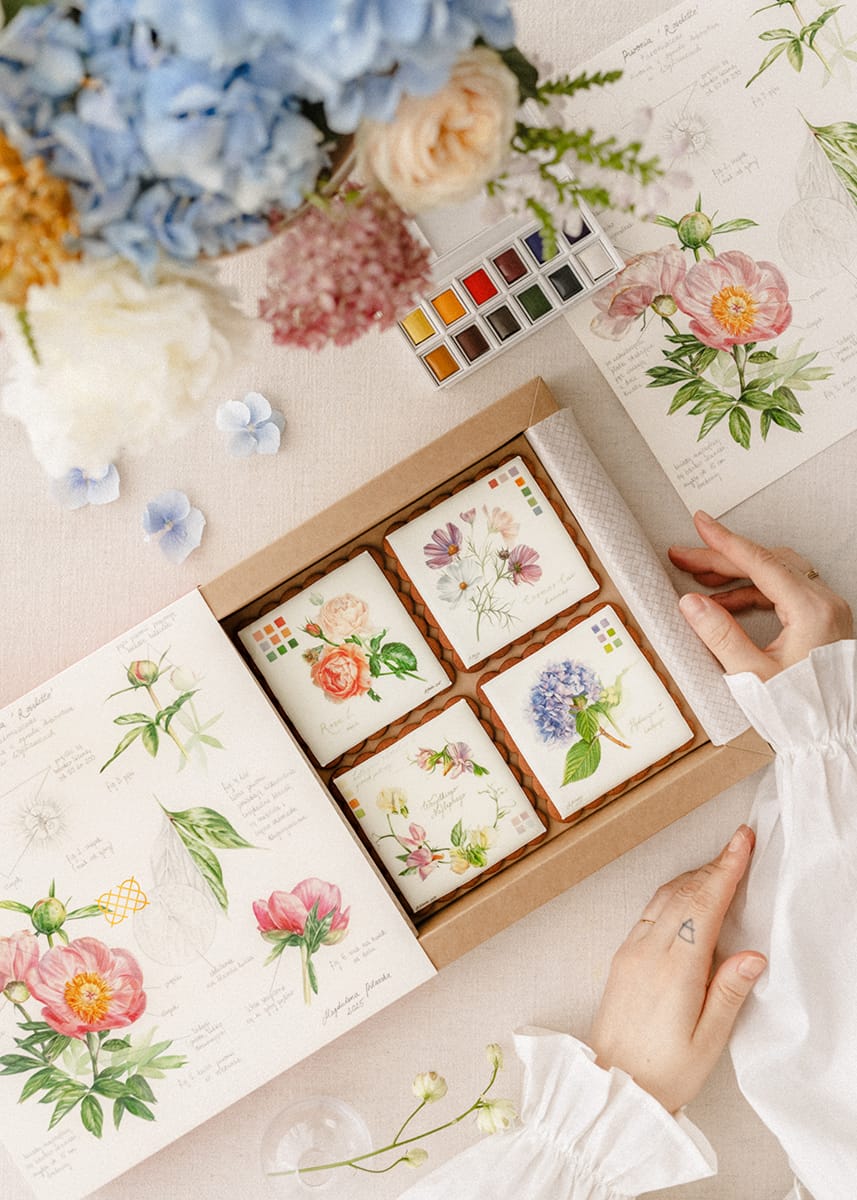 Pierniczki z kolekcji kwiatowej zaprojektowała Magdalena Pilarska, artystka pochodząca z Torunia. Jest członkinią największego na świecie, prestiżowego brytyjskiego towarzystwa botanicznego – Society of Botanical Artists. Malarstwem botanicznym akwarelą zajmuje się od ponad czterech lat, a w swoich pracach umiejętnie łączy historię z pięknem natury. Inspiracje, które towarzyszą jej sztuce to kwiaty baroku, mowa kwiatów oraz archaiczne dzienniki botaniczne. W ubiegłym roku prace Magdaleny Pilarskiej wystawione zostały na Królewskiej Wystawie Róż - Royal Rose 2024 w Łazienkach Królewskich w Warszawie.